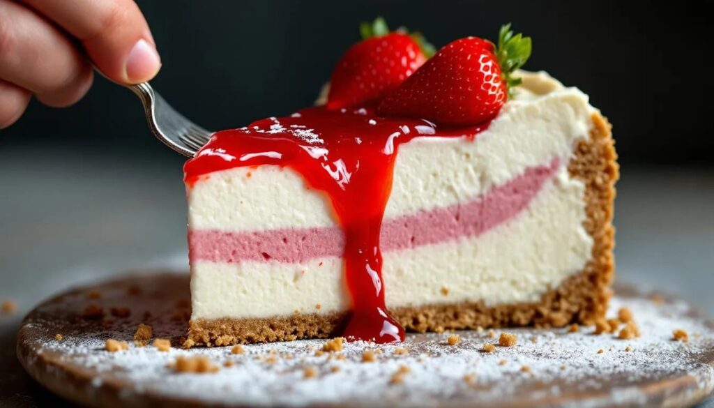 Wer die Methode einmal verstanden hat, kann sie das ganze Jahr über anpassen – mit Himbeeren im Sommer, Zwetschgen im Herbst oder Blutorangen im Winter. Doch jetzt, Mitte März, sind Erdbeeren der Kern: ihre Säure bricht die Süße des Frischkäses auf, ihre Farbe macht aus einem schlichten Dessert ein echtes Tischgespräch. Keine Gelatine, kein Wasserbad, kein Temperatur-Jonglieren. Wer eine Springform besitzt und einen Kühlschrank, kann diesen Cheesecake zubereiten.