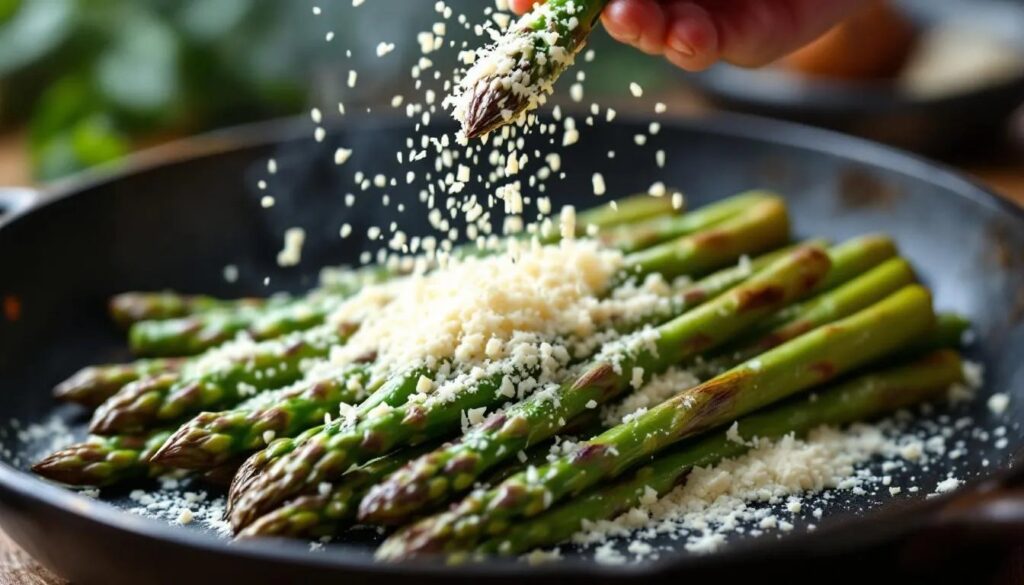 Wer keinen Parmesan zur Hand hat, kann Pecorino Romano (etwas salziger, schärfer) oder einen reifen Bergkäse verwenden — die Kruste wird etwas weicher, aber der Geschmack bleibt überzeugend. Im Frühsommer lassen sich auch Zucchini-Stangen nach demselben Prinzip zubereiten. Wer die Zitrusnote verstärken möchte, gibt zum Abschluss eine Prise Zitronenzeste dazu oder ersetzt Zitrone durch Limette für eine frischere, leicht asiatische Note. Für eine vegane Variante eignet sich geriebener Hefeflocken-Streuer als Parmesan-Alternative, der zwar keine identische Kruste bildet, aber einen angenehm nussigen Ton mitbringt.