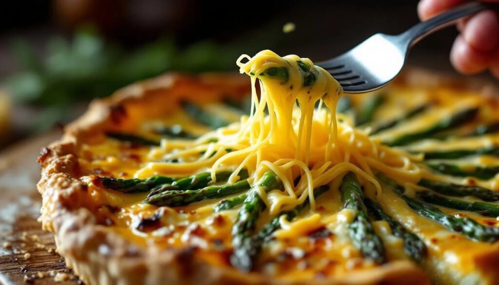 In einer großen Schüssel die vier Eier mit dem Schneebesen aufschlagen, bis sie gleichmäßig verbunden sind. Crème fraîche und Milch dazugeben und glatt rühren. Mit Salz, Pfeffer und einer Prise frisch geriebener Muskatnuss würzen – Letztere bringt eine dezente Wärme in den Guss, die sich mit dem Spargel überraschend gut verträgt. Etwa zwei Drittel des geriebenen Parmesans unterrühren. Die Masse sollte homogen sein, aber nicht schaumig geschlagen; kleine Luftblasen führen zu einer ungleichmäßigen Oberfläche.